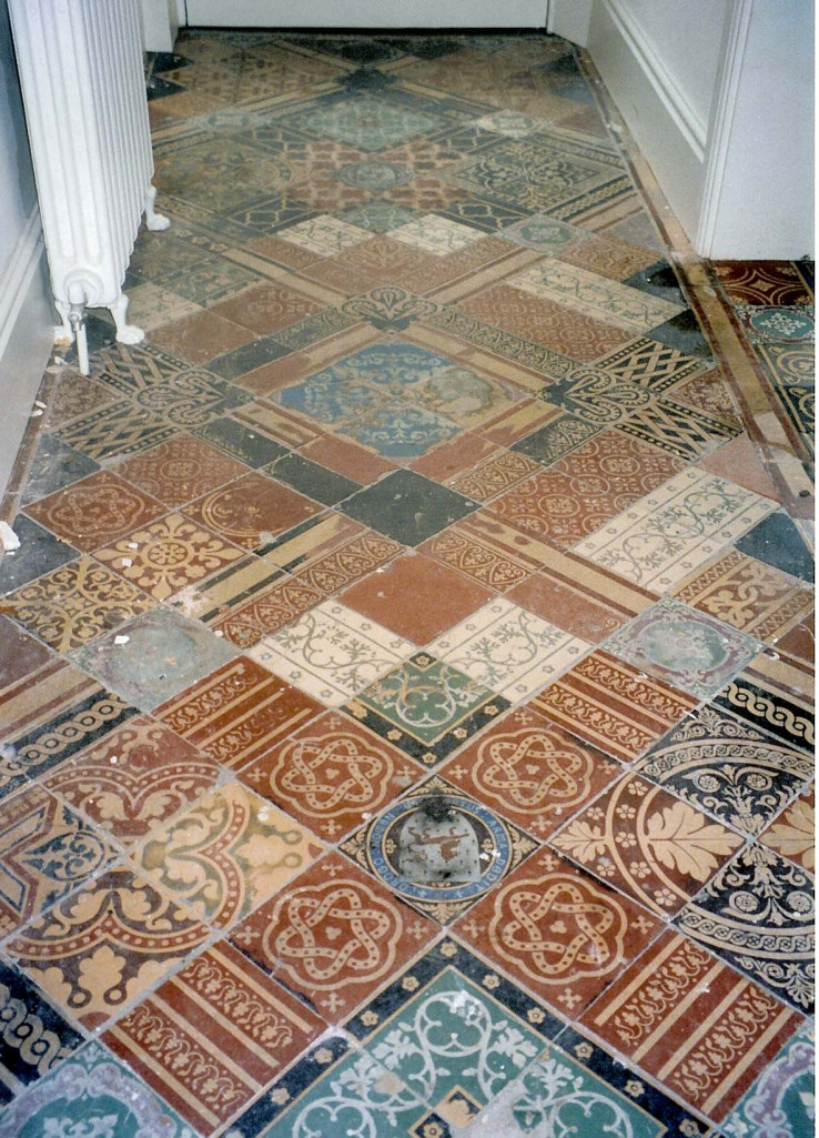 v4 an eclectic hall floor before cleaning Published July 2, 2014 at 738 × 1025 in Victorian and Edwardian Tiles – circa 1870 – 1910 an eclectic hall floor before cleaning