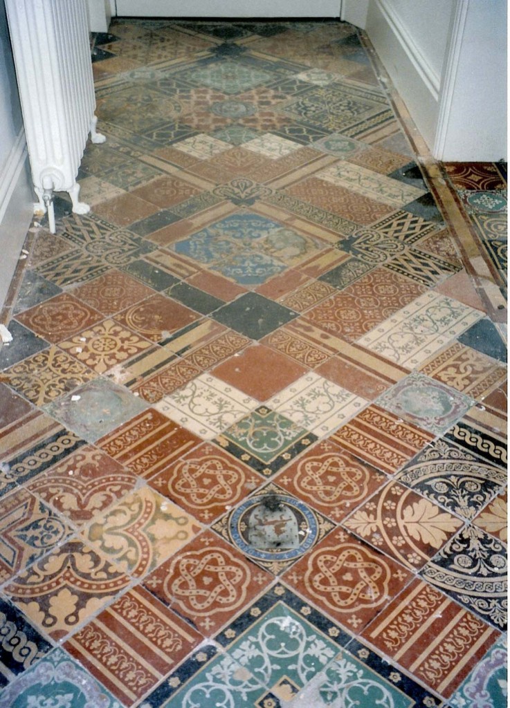 v4 an eclectic hall floor before cleaning Published July 2, 2014 at 738 × 1025 in Victorian and Edwardian Tiles – circa 1870 – 1910